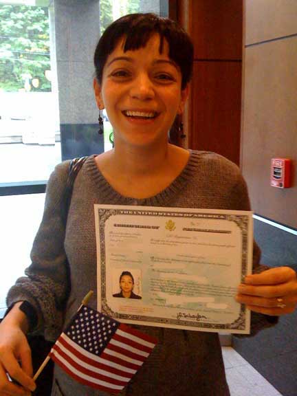This is a picture of Martha with her US Citizenship papers! And just in time to vote!